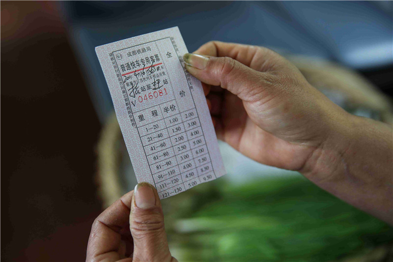 圖四:4月16日,在開往重慶的5630次列車上,乘客展示客票。
