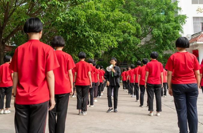 張桂梅在督促學生做課間操。(2020年7月 新華社記者陳欣波 攝)