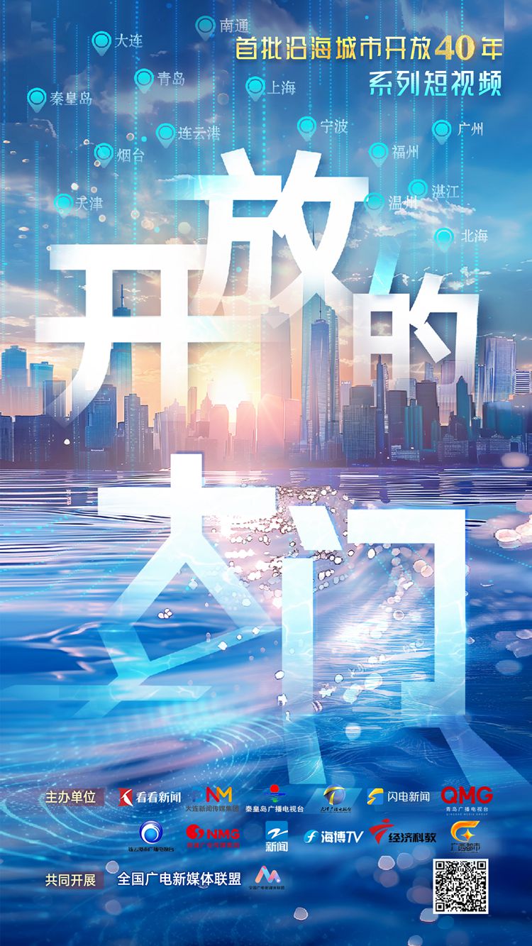 上海广播电视台融媒体中心、大连新闻传媒集团新闻中心、秦皇岛市广播电视台、天津海河传媒中心电视新闻部、闪电新闻、连云港市广播电视台、南通广播电视台新闻中心、浙江电视台新闻频道、福建省广播影视集团、青岛市广播电视台、南方财经全媒体集团、广西广播电视台都市频道:首批沿海城市开放40周年《开放的大门》系列短视频