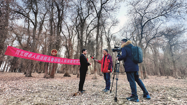 “花开中国”采访小组在新疆阿瓦提采访调研。诸暨市融媒体中心 供图