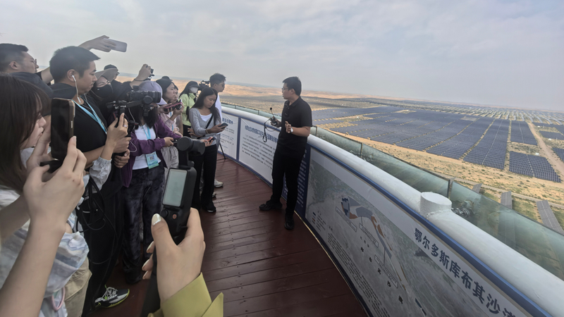 采访团成员走进鄂尔多斯达拉特旗光伏园区。