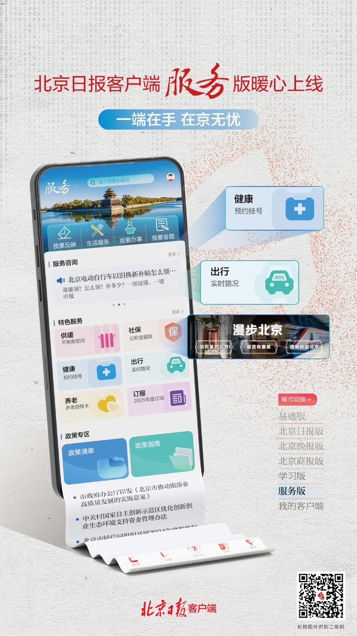 北京日报客户端“服务版”聚焦北京市民高频生活所需,通过100多项便民服务打造具有“新闻+服务”特色的移动服务平台,设置基础功能区、服务资讯区、特色服务区和政策专区四大板块,提供服务新闻、办事小程序、接诉即办投诉通道、生活服务推荐等各类服务,并连通“京通”小程序,用户可以快速获取所需服务事项,一站式办理业务。