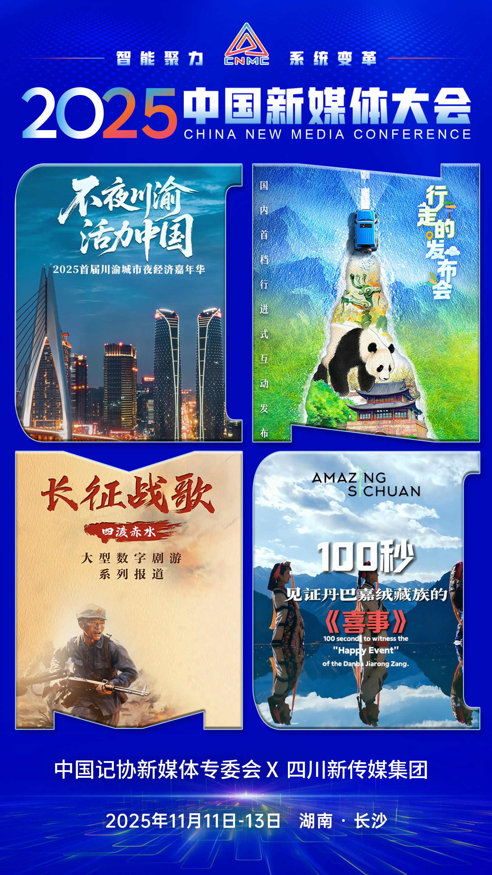 2025中国新媒体大会将于11日至13日在湖南长沙召开,中国记协新媒体专业委员会各成员单位纷纷推出“联名海报”为大会预热。